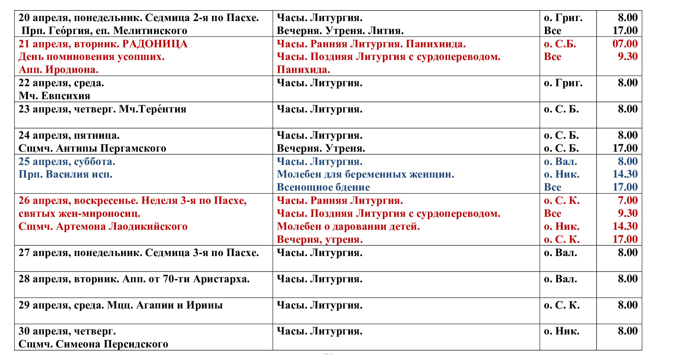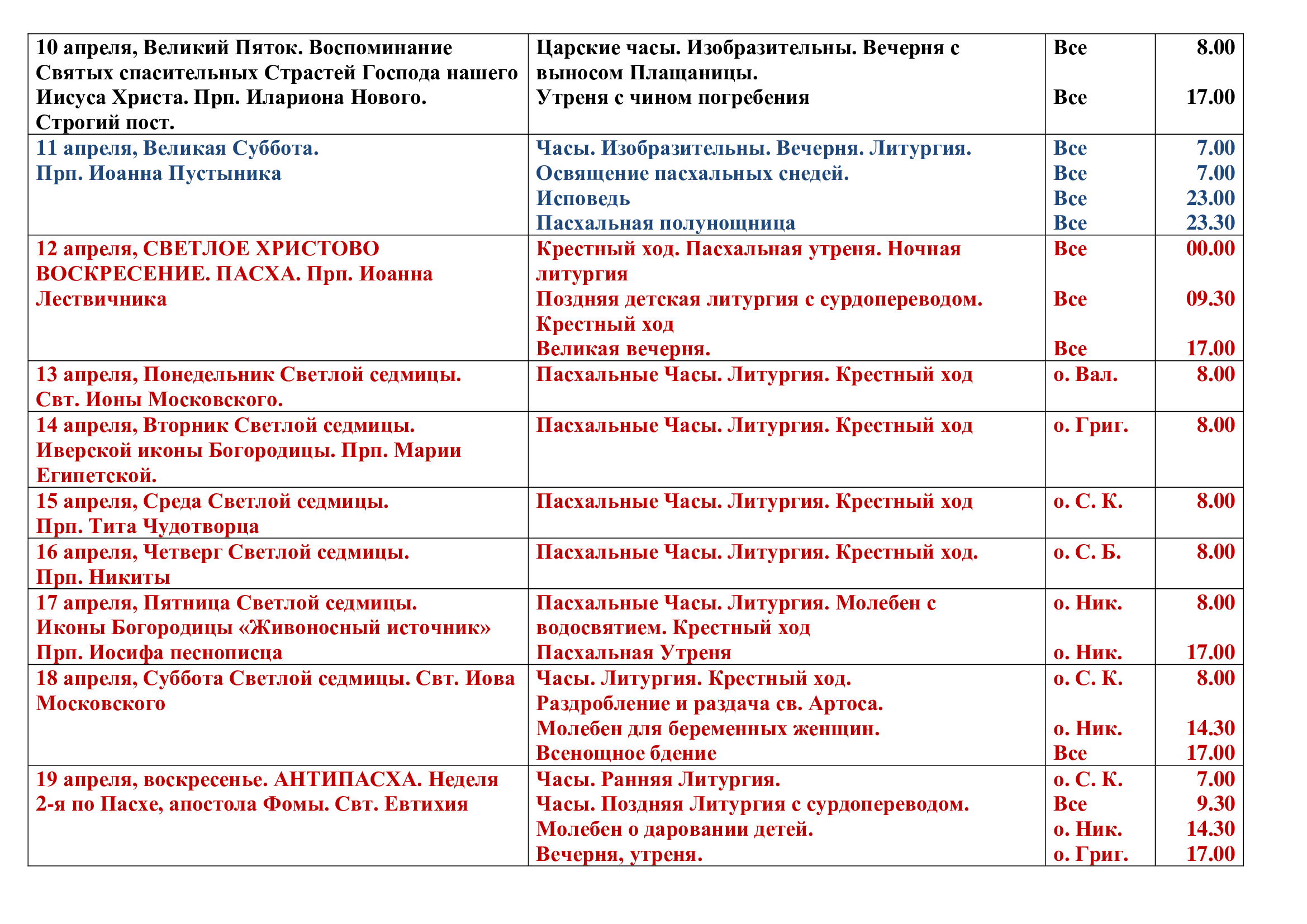 Расписание богослужений на март-апрель 2026г. в Патриаршем Подворье — храме Всех Святых в Земле Российской просиявших в Новокосино